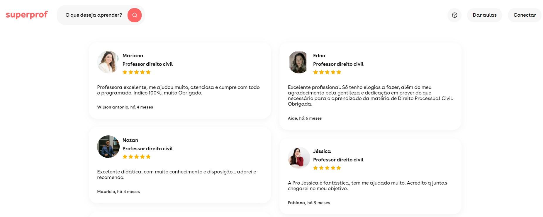 Uma opção para quem quer um ensino mais personalizado e com foco em dificuldades específicas são as aulas particulares. E para aprender Direito Civil com um professor particular, você pode contar com a Superprof, uma plataforma de conexão entre professores e alunos, disponível em São Paulo e todo o Brasil.