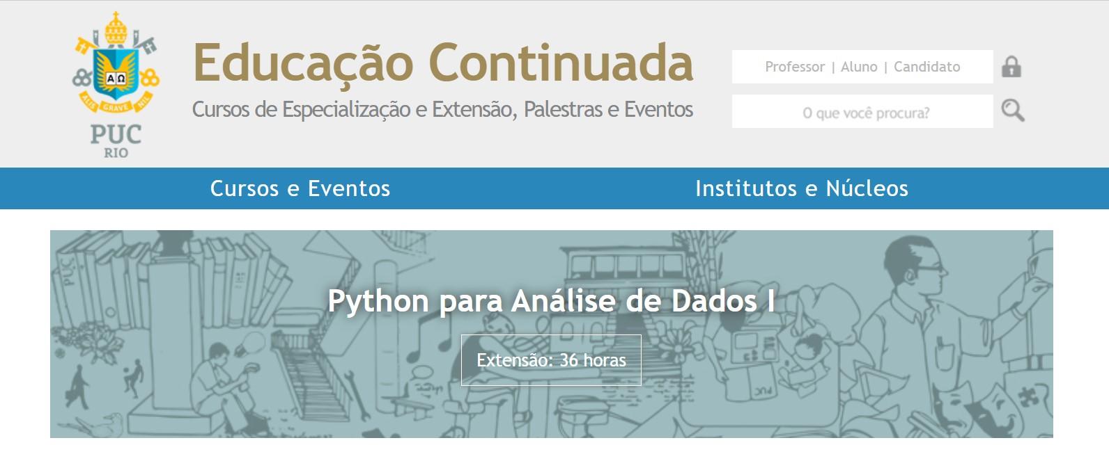 O objetivo do curso "Python para Análise de Dados" da PUC RJ é "capacitar profissionais a analisar diferentes tipos de dados usando Python e criar seus próprios projetos para análise de dados" passando por várias etapas.