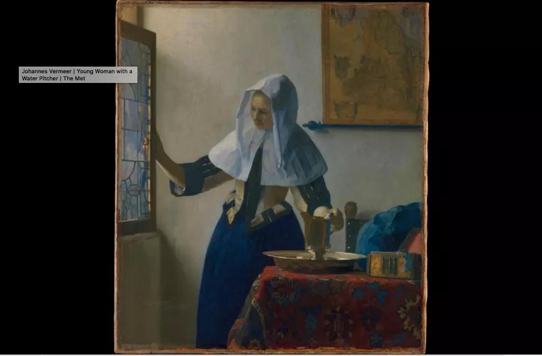 Esta obra, também conhecida como "jovem mulher com um jarro de água", é um óleo sobre tela feito por volta de 1662 pelo pintor holandês Johannes Vermeer.