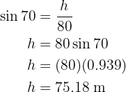 Perceba que a altura divide nosso triângulo inicial em dois triângulos retângulos. Vamos utilizar o triângulo da direita, pois temos mais informações nele, para obter o valor da altura e, posteriormente, calcular a área. Para encontrar a altura, vamos usar o seno do ângulo.