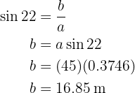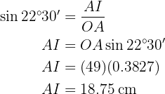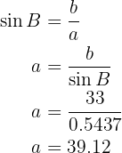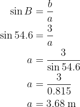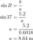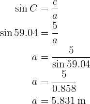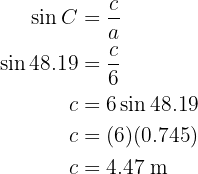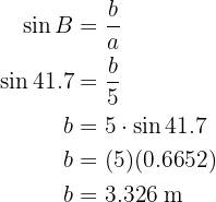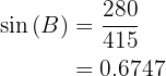 Aplicando o arco seno, temos que o ângulo vale . Agora, uma vez que temos dois ângulos, podemos calcular imediatamente o último;