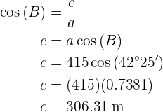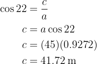aplicamos a função do cosseno sobre o ângulo