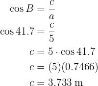 primeiro calculamos a função cosseno do ângulo utilizando o cateto e a hipotenusa que conhecemos para, então, aplicar a função inversa de arco seno.