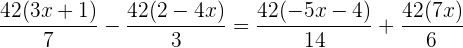 Retiramos os denominadores, para isso, em primeiro lugar, encontramos o mínimo múltiplo comum.