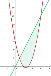A área compreendida entre duas funções é igual à área da função que está situada acima menos a área da função que está situada abaixo: