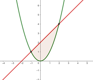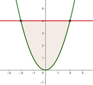 Determinamos também os pontos de interseção das funções, que nos darão os limites de integração.