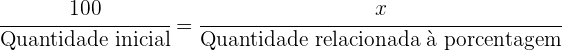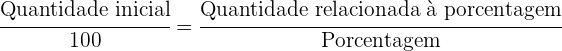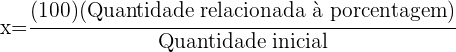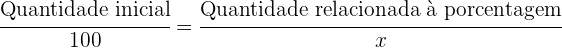 Ao substituir alguns dos valores com x, bastará isolar x. Por exemplo, supondo que queremos calcular a porcentagem, então substituímos “porcentagem” por x: