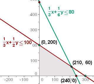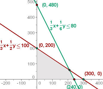 1/3x + 1/6y = 80; y = 0                                      (240, 0)
