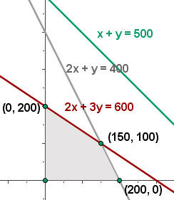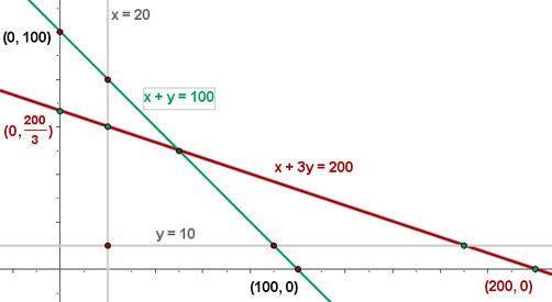 1/3x + 1/2y = 100; x = 0                                    (0, 200)
