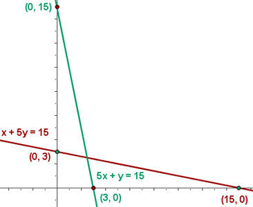 Representaremos as retas a partir de seus pontos de interseção com os eixos.