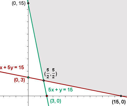 f(5/2, 5/2) = 10 · 5/2 + 30 · 5/2 = 100   Mínimo