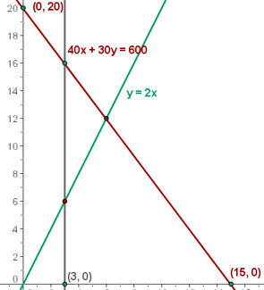 f(15, 0) = 10 · 15 + 30 · 0 = 150