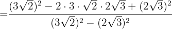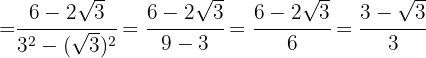 Multiplicamos o numerador e o denominador pelo conjugado do denominador, eliminamos os parênteses no numerador e realizamos a soma por diferença no denominador, o que resulta em uma diferença de quadrados: