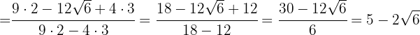 Multiplicamos os radicais do denominador, extraímos fatores do radical e simplificamos a fração: