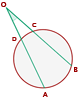 O vértice do ângulo semi-inscrito está na circunferência; um de seus lados é secante e o outro é tangente a ela.