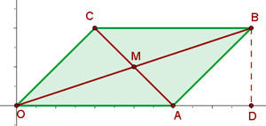 Agora devemos encontrar o ponto médio. Sabemos que as diagonais se cruzam no ponto médio (e este ponto é o centro do paralelogramo), portanto basta encontrar o ponto médio de alguma das diagonais. O ponto médio da diagonal \bar{AC} é