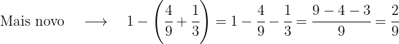 Reduzimos as frações de cada parêntese ao mesmo denominador.
