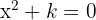 Ou seja, toda a reta k > 1 faz com que a equação não tenha raízes reais.