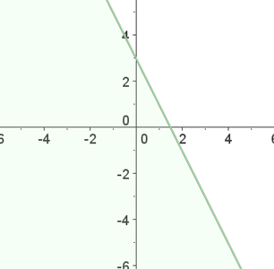 Como a desigualdade não se cumpre, a solução é o semiplano onde não está o ponto