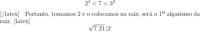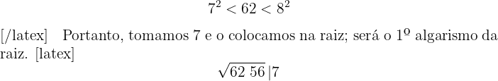 2Com o primeiro algarismo (7) calculamos o número cujo quadrado é imediatamente inferior.