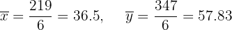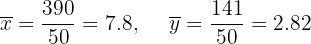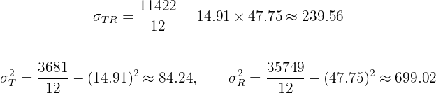 Agora calculamos as médias, a covariância e os desvios padrão: