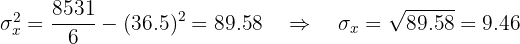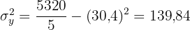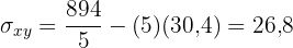 Calculamos a covariância, as variâncias e os desvios padrão: