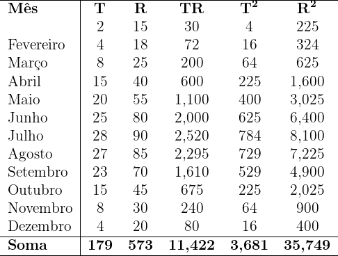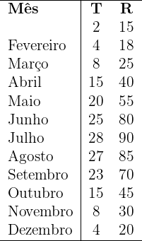A tabela abaixo mostra a relação entre a temperatura média mensal (T) em
