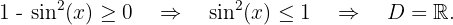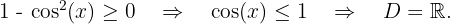 O domínio de uma função irracional de índice par é formado pelos valores que tornam o radicando maior ou igual a zero. As funções trigonométricas seno e cosseno têm como domínio todos os números reais. Além disso, seu valor máximo é 1, o que garante que essas funções sempre terão valores menores ou iguais a 1 para qualquer número real.