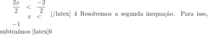 4 Resolvemos a segunda inequação. Para isso, subtraímos