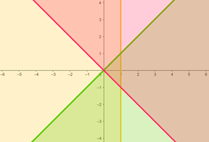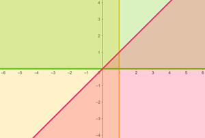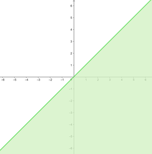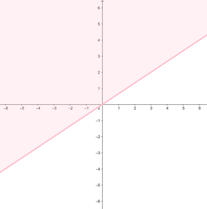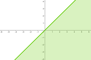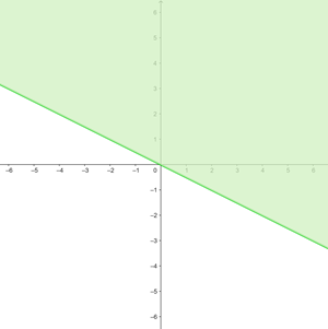 e o substituímos na desigualdade. Se a desigualdade for verdadeira, a solução será o semiplano onde esse ponto se encontra; caso contrário, a solução será o outro semiplano.