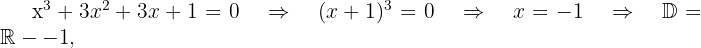 O domínio desta função são todos os reais, exceto os valores onde o denominador da função racional dentro da raiz cúbica se anula. Assim,