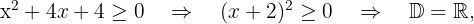 Se igualarmos a zero, a equação correspondente não tem soluções reais. Além disso, notamos que, se tomarmos qualquer valor, o resultado será positivo ou zero. Portanto,