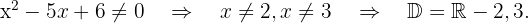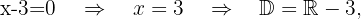 No primeiro trecho, é necessário que o denominador seja diferente de zero. No segundo trecho, sendo 3 uma constante que é sempre positiva, apenas estudamos se o denominador é maior que zero. Assim,