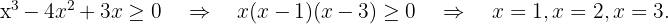 Finalmente, tomamos os intervalos em que a desigualdade é positiva, com os extremos onde se anula incluídos. A união desses intervalos será o nosso domínio. Portanto,