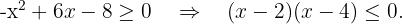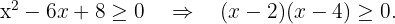 Igualamos a zero para obter as raízes latex(x-4)=0\quad\Rightarrow\quad x=2, x=4.[/latex]
