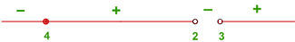 Finalmente, pegamos os intervalos nos quais a desigualdade é negativa. A união destes será nosso domínio. Portanto,