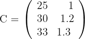 Matriz que expressa as horas de linha de produção e e administração para cada um dos modelos: