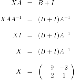 b) Utilize o método Gauss para transformar o lado esquerdo, , na matriz identidade, e a matriz resultante do lado direito será a matriz inversa