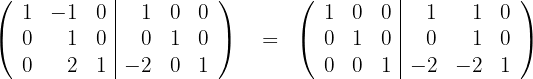 b) Utilize o método Gauss para transformar a metade da esquerda, , na matriz identidade, e a matriz que resulte do lado direito será a matriz inversa