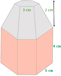 4 Com os valores do volume da pirâmide e do ortoedro, somamos ambos para obter o volume total: