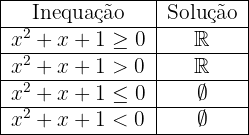 2 Como o discriminante é negativo, a inequação ou não possui soluções, ou suas soluções são todos os números reais.