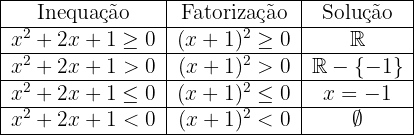 Como qualquer número real elevado ao quadrado é sempre maior ou igual a zero, sempre que uma inequação for positiva e associada ao sinal