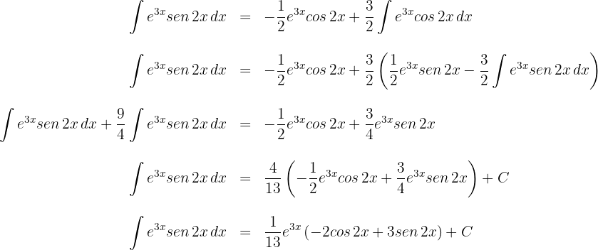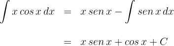 3A última integral obtida é resolvida mediante integral por partes, dessa forma, escolhemos