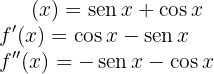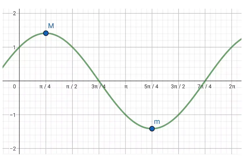 \displaystyle \f(x)=\operatorname{sen}x+\cos x, \quad 0 < x < 2\pi[/latex]