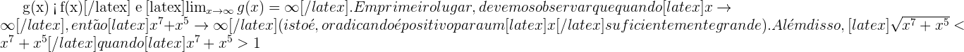 já que o numerador é um polinômio de maior grau e os coeficientes principais têm o mesmo sinal. Por outro lado,