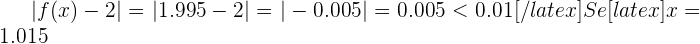 \displaystyle |f(x) - 2| = |2.0075 - 2| = |0.0075| = 0.0075 < 0.01[/latex]