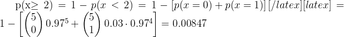 Um laboratório afirma que uma droga causa efeitos secundários numa proporção de 3 em cada 100 pacientes. Para contrastar essa afirmação, outro laboratório escolhe ao acaso 5 pacientes para aplicar a droga.