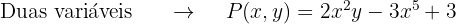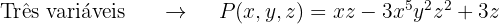 Um polinômio pode conter múltiplas variáveis. Neste caso, os monômios são formados por um coeficiente e diversas variáveis, cada uma com seu respectivo expoente. Por exemplo: