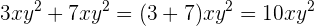 Podemos observar que todos os monômios têm as mesmas variáveis, porém apenas dois monômios têm variáveis com as mesmas potências. Portanto, apenas esses dois podem ser simplificados