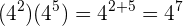 Entendemos que ao multiplicar dois termos com a mesma base, o resultado é a base elevada à soma dos expoentes. Em outras palavras, dadas as expressões com a mesma base